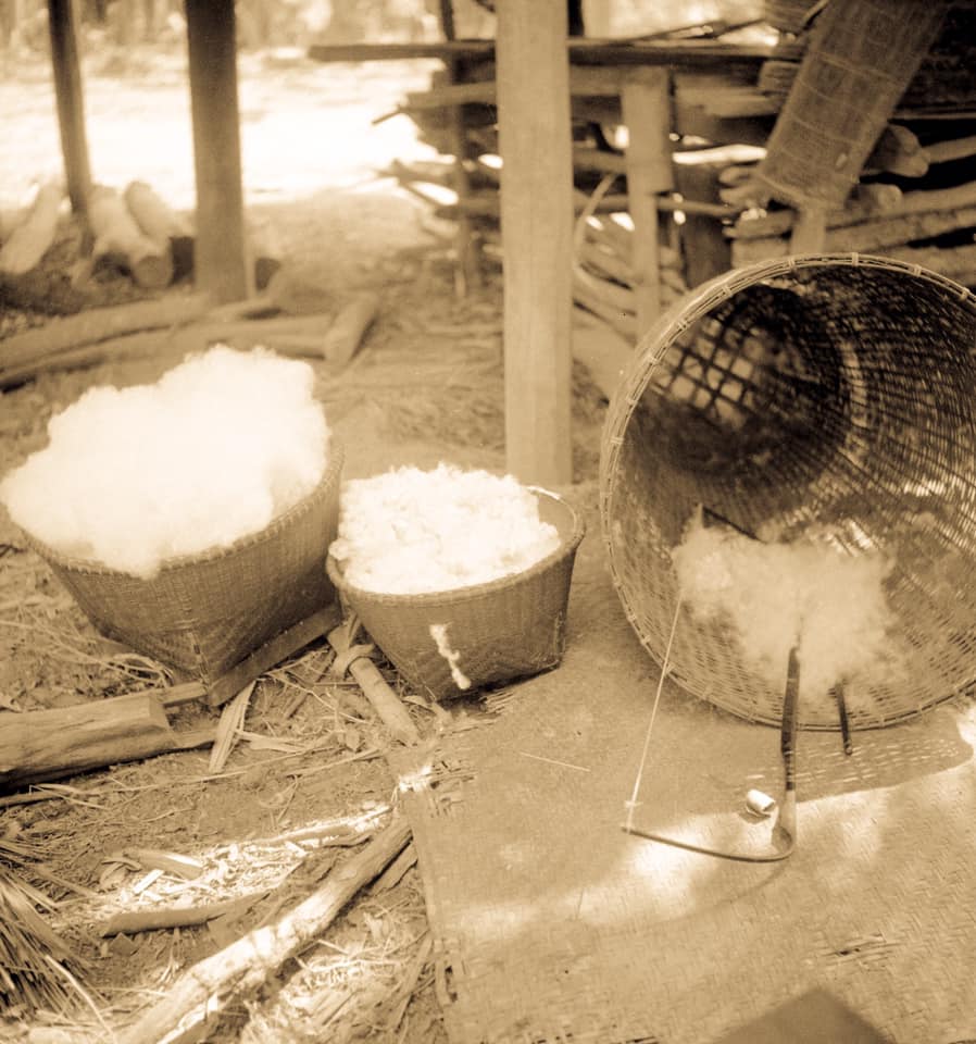 การดีดฝ้ายให้เป็นเส้นใยละเอียด ก่อนการนำไปปั่นเป็นเส้นใย