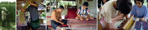 5. การปั่นหลอด เป็นการปั่นด้ายจากกงใส่หลอด บรรจุในกระสวย เพื่อทำการทอเป็นด้ายเส้นพุ่ง