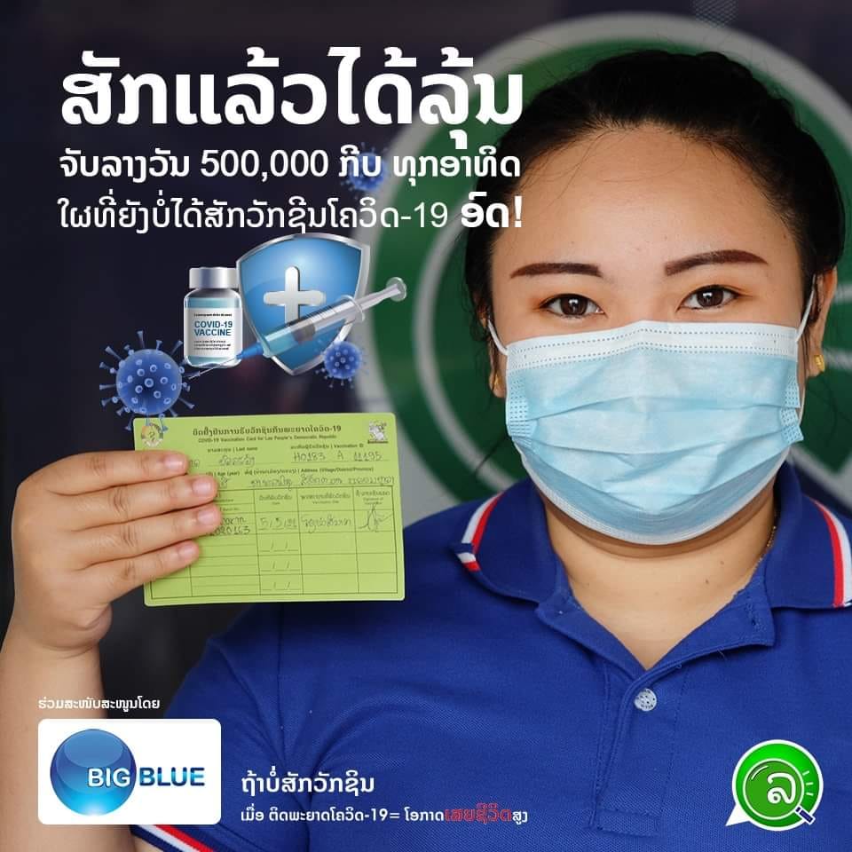 ทางฝั่งประเทศเพื่อนบ้านเฮา สปป.ลาว ออกแคมเปญเชินชวนให้ประชาชนมาฉีดวัคซีนด้วย "สักแล้วได้ลุ้น" คือ การมาฉีดวัคซีนแล้วได้ลุ้นจับรางวัลเงินสด 500,000 กีบต่ออาทิตย์ ใครที่ยังไม่มาฉีดวัคซีน อด! ลุ้นรางวัลนี้ จะเห็นได้ว่า ทาง สปป.ลาว นั้นมีมาตรการ 1) เชิญชวนให้ฉีดวัคซีนทั่วประเทศ 2) กระตุ้นให้ฉีดด้วยการจับรางวัล และล่าสุด 3) กึ่งบังคับให้ฉีดก่อนการติดต่อกับทางการ โดยมีการออกประกาศว่า ผู้ใดยังไม่ได้สักวัคซีนจะติดต่อขอทำใบขับขี่ ต่ออายุใบขับขี่ หรือต่อทะเบียนรถทุกชนิดไม่ได้ และคาดว่าน่าจะมีมาตรเข้มขึ้นไปเป็นลำดับ