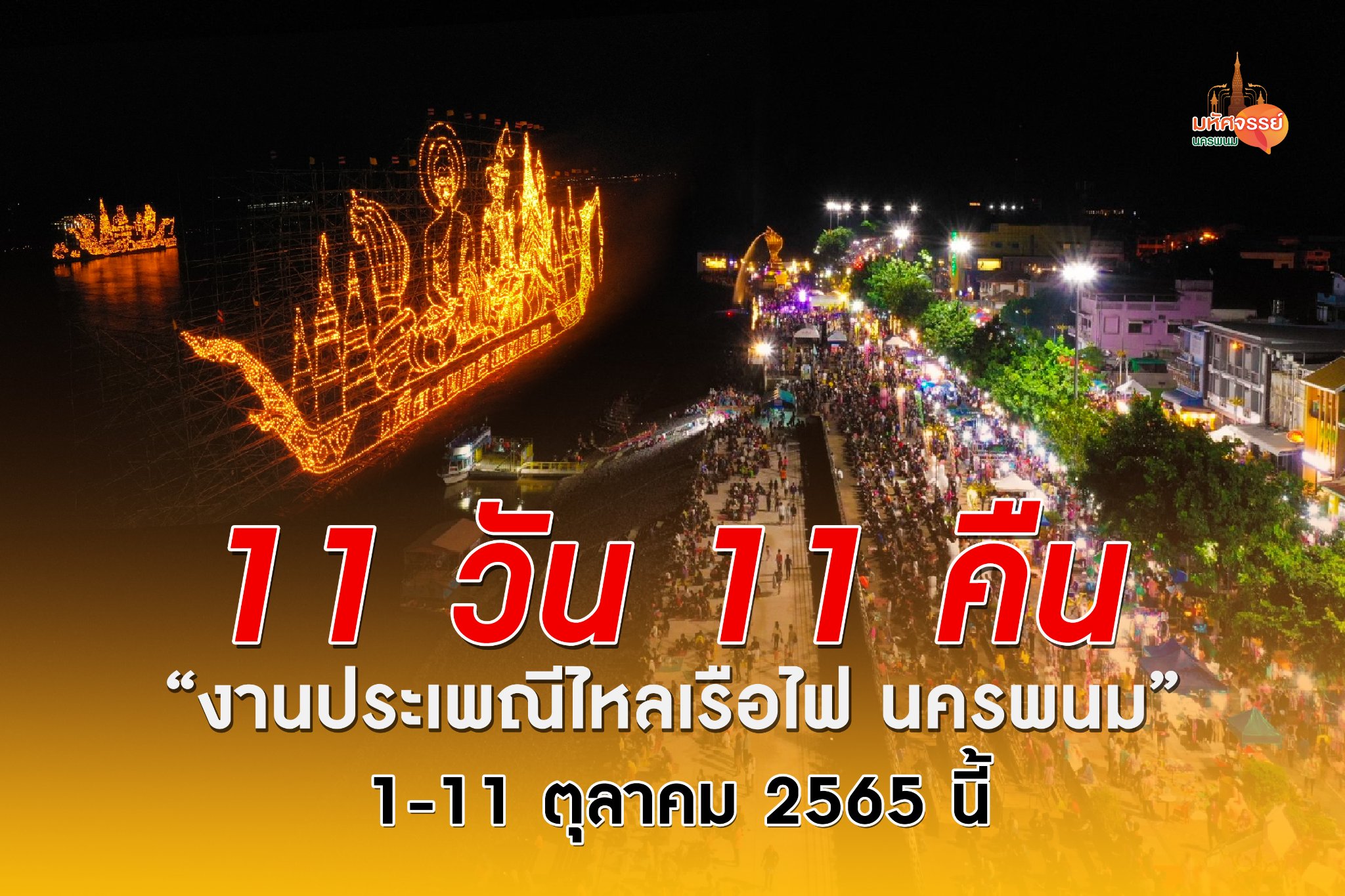 ในปี 2565 นี้ จังหวัดนครพนม เตรียมจัดงานยิ่งใหญ่ขึ้นกว่าทุกปี "งานไหลเรือไฟ และงานกาชาด ประจำปี 2565" ระหว่างวันที่ 1 - 11 ตุลาคม 2565 (11 วัน 11 คืน) ชมมหกรรมไหลเรือไฟอย่างยิ่งใหญ่จาก 12 อำเภอ ในคืนวันออกพรรษา ขึ้น 15 ค่ำ เดือน 11 ในวันที่ 10 ตุลาคม 2565 ส่วนวันอื่นๆ จะมี เรือไฟ ไหลโชว์ทุกคืน มีถนนคนเดินทุกคืน มีการแสดงศิลปวัฒนธรรมทุกคืน เช่น มหรสพคอนเสิร์ต หมอลำ คาราวานสินค้า สวนสนุก งานกาชาด ถนนคนเดินหอนาฬิกา การออกร้านค้าชุมชน OTOP ร้านค้าท้องถิ่นสินค้าพื้นเมือง พิธีรำบวงสรวงใหญ่พระธาตุพนม กับนางรำนับพัน เวทีการแสดงศิลปวัฒนธรรมชนเผ่าไทนคร เป็นการกระตุ้นการท่องเที่ยวและฟื้นฟูเศรษฐกิจจังหวัดนครพนมกันอีกครั้ง