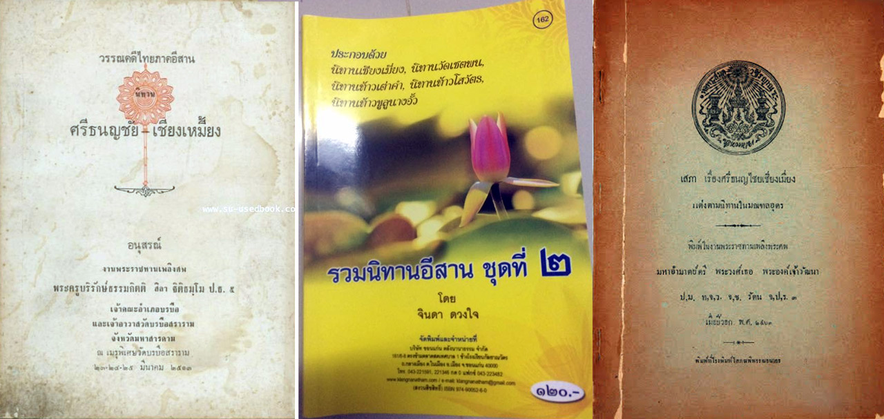 - วรรณคดีไทยภาคอีสาน ศรีธนญชัย-เซียงเหมี้ยง อนุสรณ์งานพระราชทานเพลิงศพ พระครูบริรักษ์ธรรมกิตติ สิลา ฐิติธมฺโม ปร.๕ เจ้าคณะอำเภอบรบือ มหาสารคาม พ.ศ. ๒๕๑๓
