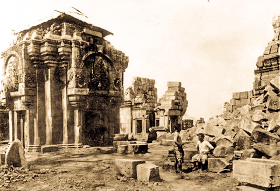 ผนังกำแพงหินปราสาทพนมรุ้ง ในปี พ.ศ. 2472